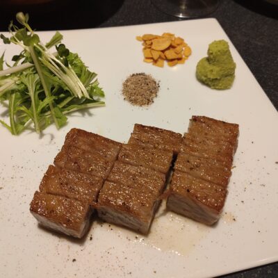 ピリ辛な味付けで、ガーリックとお茶の風味が香ばしくお酒によく合います。